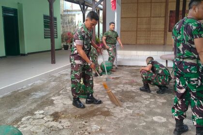 Sinergi Anggota Koramil 0825/12 Rogojampi : Kerja Bakti Bersih-Bersih untuk Lingkungan yang Lebih Sehat