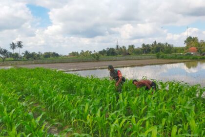 Joosnews.com - Singojuruh – Babinsa Koramil 0825-13/Singojuruh, Serka Mustopa membantu petani merawat…