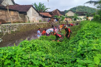 Giat Babinsa Desa Alas Malang : Karya Bakti Aliran Irigasi Sungai Badeng