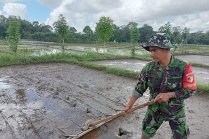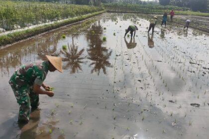 Tingkatkan Ketahanan Pangan, Babinsa Bantu Petani Tanam Padi