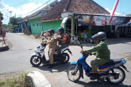 Babinsa Boyolangu melaksanakan woro-woro untuk memasang bendera dan umbul-umbul
