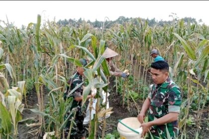 Babinsa Sukonatar Bersama Petani Jagung Untuk Mendukung Ketahanan Pangan Nasional