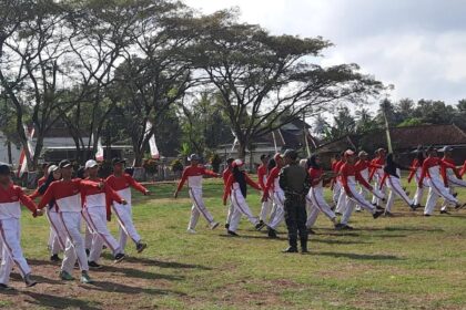 Persiapan Upacara Hari Kemerdekaan, TNI Dan Polri Di Kecamatan Genteng Latih Peserta Paskibra