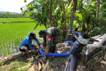 Babinsa Desa Barurejo Laksanakan Pendampingan Penggunaan Pompa Brigade Kodim Untuk Mengaliri Sawah Petani.