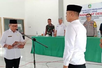 Babinsa Siliragung Menghadiri Pelantikan dan Pengambilan Sumpah Jabatan Perangkat Desa Siliragung (Kadus Krajan)