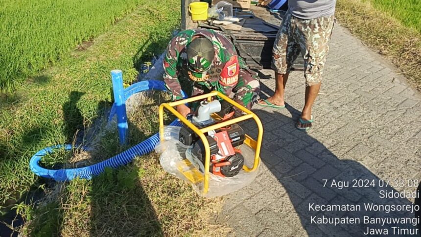 Joosnews.com – Babinsa Koramil 0825/15 Wongsorejo melaksanakan pendampingan mengairi padi, di Desa sidodadi Kecamatan Wongsorejo Kabupaten Banyuwangi Kamis (08/08/2024).
