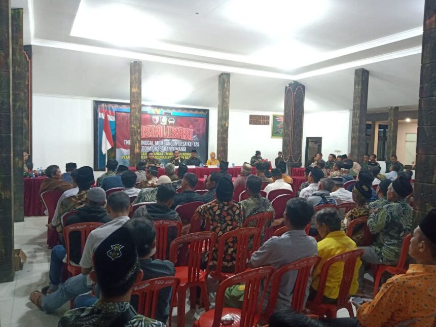 Joosnews.com – Banyuwangi, Komando Distrik Militer (Kodim) 0825 Banyuwangi terus mengukuhkan komitmennya dalam mempercepat pembangunan desa melalui program TNI Manunggal Membangun Desa (TMMD). Sebuah kegiatan sosialisasi yang bertujuan mempererat kemanunggalan TNI dan rakyat, sekaligus menyampaikan program-program pembangunan yang berorientasi pada peningkatan kesejahteraan masyarakat desa. (Juma’t, 25/05/2025)