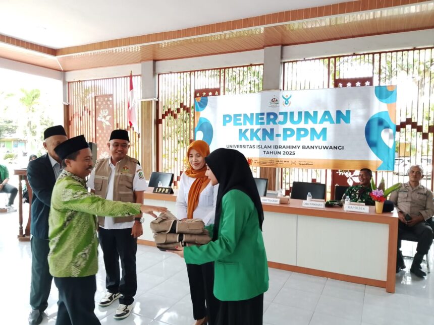 Joosnews.com – Banyuwangi, Sebanyak 313 mahasiswa Universitas Islam Ibrahimy Banyuwangi (UNIIB) secara resmi diterjunkan untuk melaksanakan Kuliah Kerja Nyata Pembelajaran Pemberdayaan Masyarakat (KKN-PPM) Tahun Akademik 2025. Acara penerjunan berlangsung pada hari ini, bertempat di Pendopo Kecamatan Tegaldlimo, Kabupaten Banyuwangi. Para mahasiswa ini akan disebar ke tiga kecamatan berbeda: Tegaldlimo, Purwoharjo, dan Muncar. Rabu, (16/07/2025), Pukul 09.00 WIB,